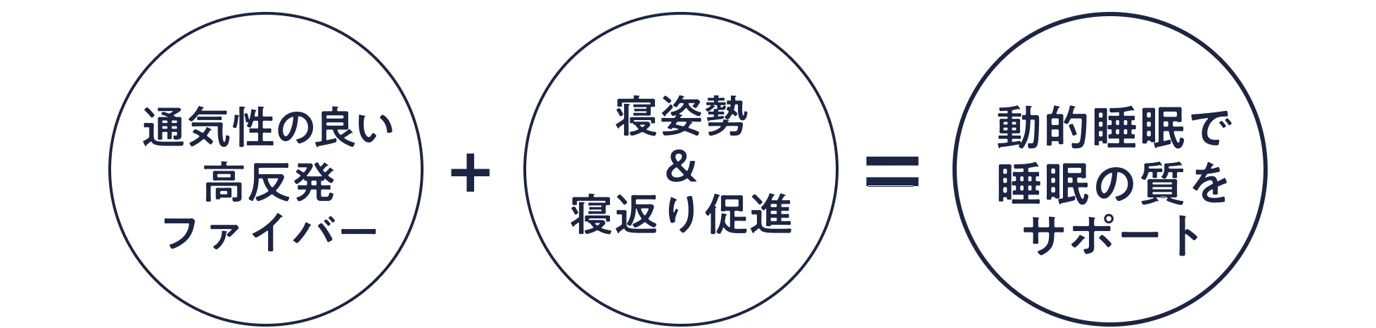 良質な睡眠を得るためのポイントは、「動的睡眠」です。動的睡眠とは、睡眠中に身体が動く状態で、想像しやすいのは ”寝返り” ですが、ちょっとした身体の動きも含みます。なぜ動的睡眠が良質な睡眠につながるのか。それは、人は寝ている間に身体を動かすことで、血流やリンパの流れを促したり、寝やすい温度に体温調節を行ったりするからです。