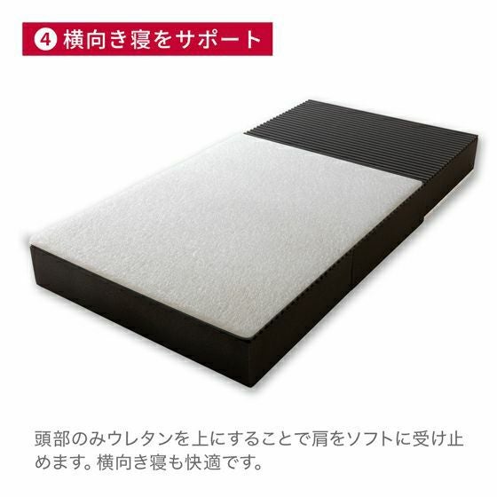 寝姿勢を保持する、厚さ17.5cm・435ニュートンのウェーブ型硬質ウレタンフォームの上部に、通気性抜群で水洗いも可能な厚さ2.5cmの高反発ファイバーを重ね、蒸れにくく快適な睡眠を実現しました。ソフトな寝心地で、高反発が初めての方や、スリープオアシスに興味はあるけど固すぎないか不安という方にも安心です。3分割仕様で、沈み込みやすい中央の腰部分と、頭部や足元の中材をローテーションできる機能はそのままに、長く快適にご使用いただけます。中材の上下入れ替えで、4通りの寝心地が体験できます。