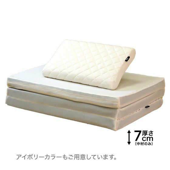 サイズ:マットレス 140cm×195cm×7.5cm(中材のみ7cm)、枕 35cm×60cm
