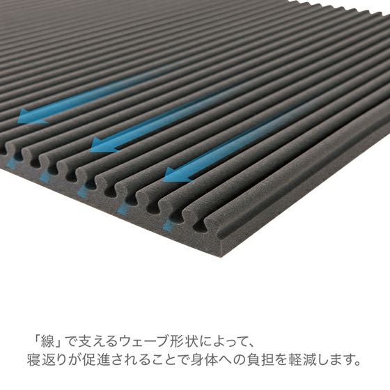 手軽に高反発の寝心地を体験したい方におすすめ、28D高密度の硬質ウレタンを、ウェーブ状にカットした高反発マットレスパッドです。体圧分散により、自然な寝姿勢と寝返りをサポートします。丸めて収納や持ち運びも楽々です。
