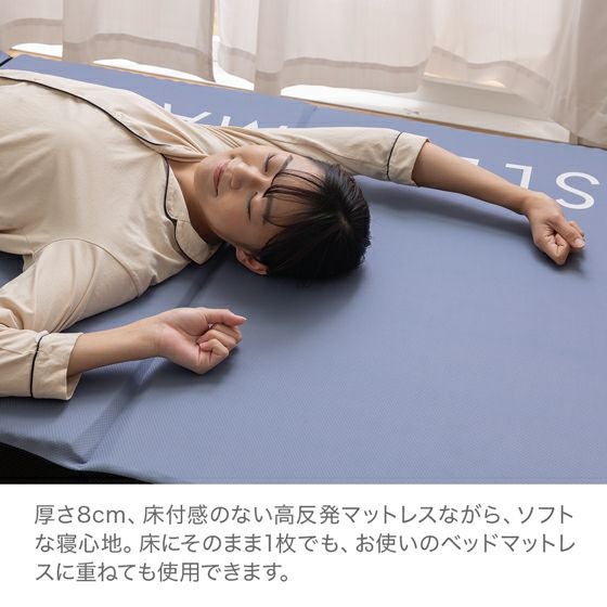 265ニュートンの硬質ウレタンをウェーブ状にカットした高反発マットレス。一般の敷布団に近い弾力で、高反発が初めての方にもおすすめです。全身をしっかりと支える8cmの厚みで快適な寝心地を保ちながら、自然な寝姿勢と寝返りで熟睡をサポートします。おしゃれなデザインで来客用にも便利です!