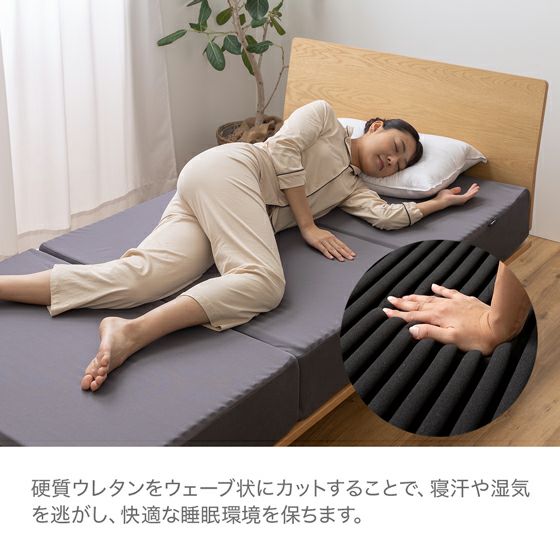 硬質ウレタンを、ウェーブ状にカットした高反発マットレス。超極厚18cmだからベッドマットレスとしても使用できます。全身をなめらかに支えて体圧を均一に分散、自然な寝姿勢と寝返りをサポートします。便利な持ち手付きで、毎日の上げ下ろしも楽々です!
