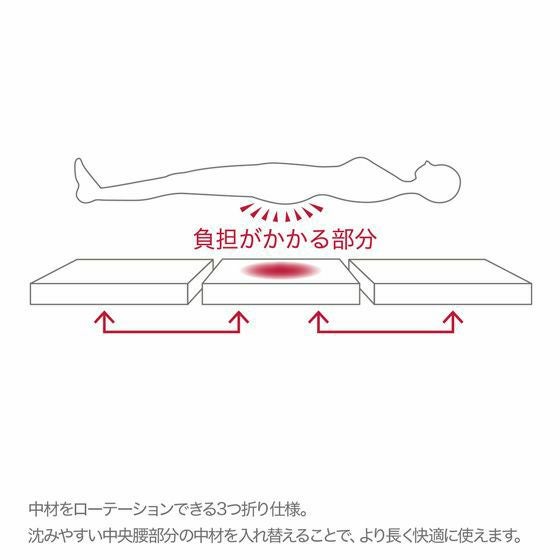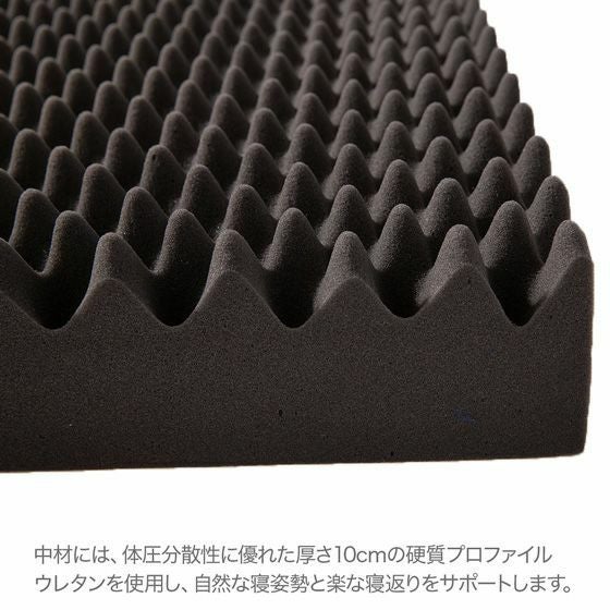 厚さ10cmの硬質ウレタンを、プロファイル加工した高反発マットレス。しっかりと寝姿勢をサポートしてくれるから、1枚でご使用いただいても床付感がありません。自然な寝姿勢と寝返りをサポートして熟睡へと導き、睡眠の質を高めます。