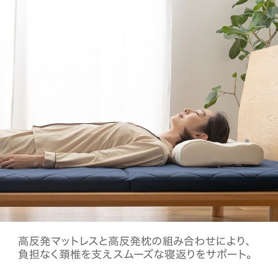 水洗い可能で通気性抜群、硬度の高い「3次元構造 高反発ファイバー」 を使用した高反発マットレスと枕の2点セットです。