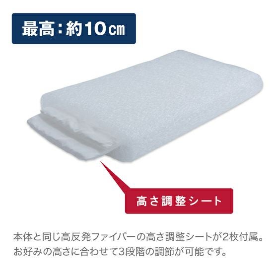 通気性抜群で水洗い可能、3次元構造 高反発ファイバーの枕です。本体と同じ3次元ファイバーの高さ調整シートが2枚付属することで高反発の機能性を増し通気性に優れお好みの高さに合わせて、高さを3段階に調整が可能です。高い反発力と弾力性で頭部を押し上げるように支え、寝返りをサポートして動的睡眠を促進します。