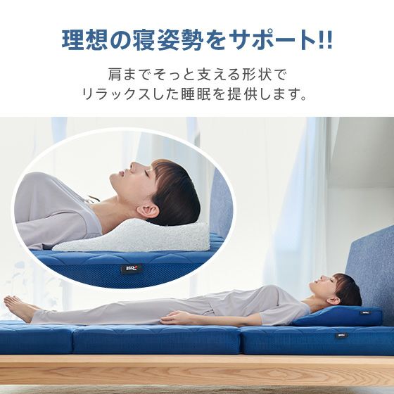 頚椎(首)と肩をそっと支えるアーチ型の形状で、理想の寝姿勢を