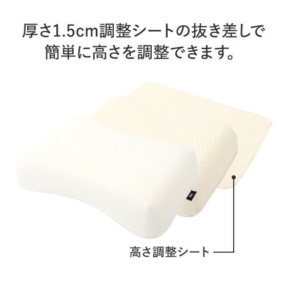 抜群の寝心地感で大人気!重さに比例して360°反発する天然ラテックスの枕がリニューアルしました。カバーはふっくら三層に織り込んだニット素材です。両サイドを高めにした設計はそのままに、理想の寝姿勢である仰向けに戻りやすく、ヨコ向き寝の肩や腕の負担も軽減しながら、頭部から頸椎までしっかりと支えます。 ウレタンフォームの高さ調整シートがセットになり、お好みの高さに調整が可能です。