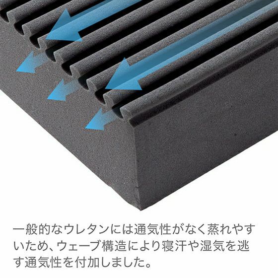 350ニュートンの硬質ウレタンを、独自のウェーブ形状にカットした高反発マットレスです。全身をなめらかに支えて体圧を均一に分散、自然な寝姿勢と寝返りをサポートします。極厚14cmだからベッドマットレスとしても使用できます。持ち手付きで、毎日の上げ下ろしにも便利です!