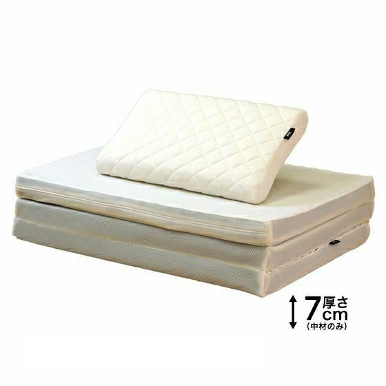 サイズ:マットレス 140cm×195cm×7.5cm(中材のみ7cm)、枕 35cm×60cm