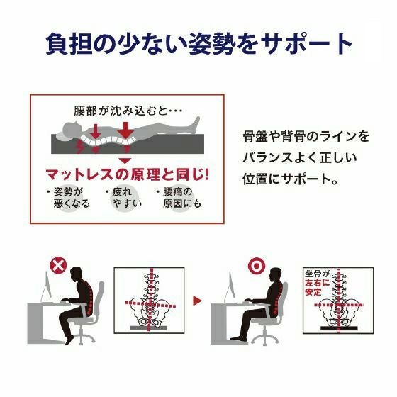長時間のデスクワークはもちろん、ご自宅のリビングやダイニングでも、快適な高反発力で臀部から腰まで、負担の少ない自然な姿勢をサポートします。