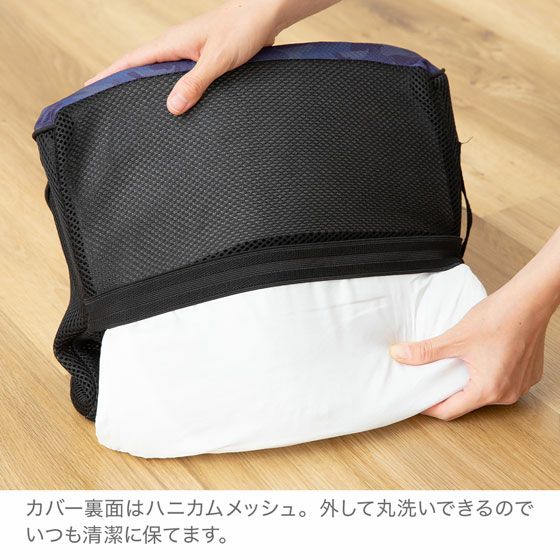 立体カーブで腰部を支え、自然な姿勢をサポート。中材もカバーも洗えるので、いつも清潔にお使いいただけます。カーシートクッションやシートクッションとの併用もおすすめです。