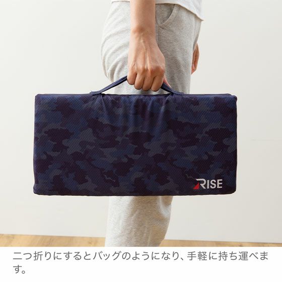 スポーツ観戦やアウトドアで大活躍する、モバイルタイプのシートクッションです。中材にマットレスと同じ高反発ファイバーを採用、お尻に敷くと疲労が軽減します。折りたたむとバッグのようになり持ち運びも楽々です。