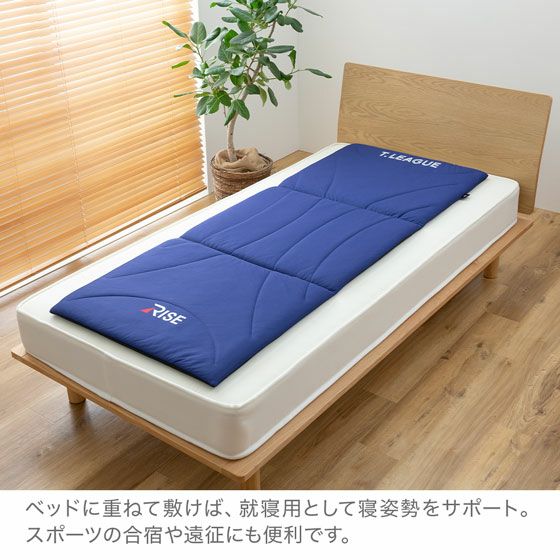 T.LEAGUEとコラボデザインのトレーニング用パッドです!ご自宅でのエクササイズや、スポーツアスリートのトレーニング、そして合宿や遠征時には就寝用としてベッドに重ねることで、全身をサポートします。中材は、通気性抜群で水洗い可能、3次元構造 高反発ファイバーを採用。3つ折りにして専用ケースに入れれば持ち運びも楽々です。
