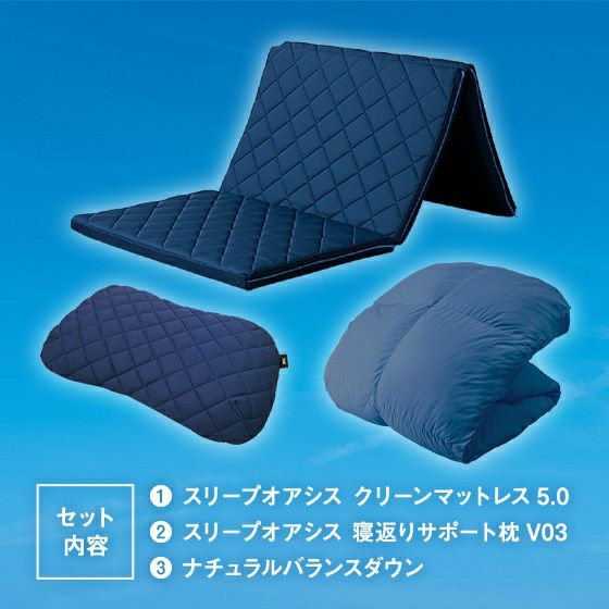 青学駅伝式 スリープオアシス動的睡眠マットレス&寝返りサポート枕&掛布団3点セット【セミダブル】