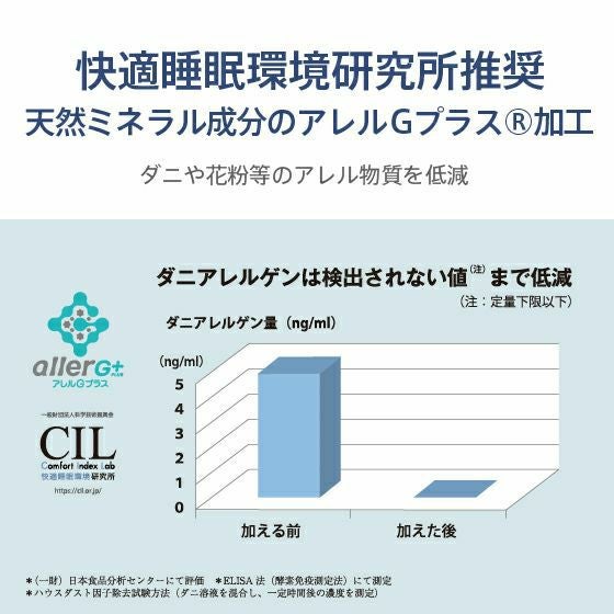 中わたには抗菌防臭加工と、快適睡眠環境研究所推奨、天然由来のアレルGプラス®加工を施し、ダニや花粉などのアレル物質を低減させる効果や気になる臭いを抑制する効果が期待できます。まさに、次世代型の掛布団の誕生です。