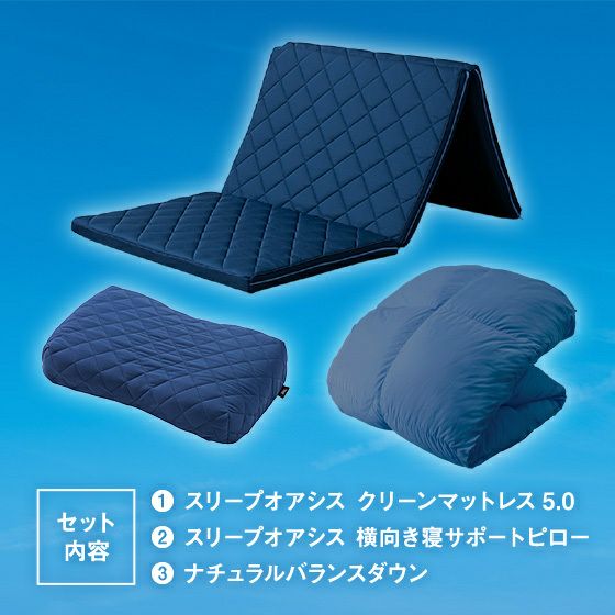 青学駅伝式 スリープオアシス動的睡眠マットレス&横向き寝サポート枕&掛布団3点セット【シングル】