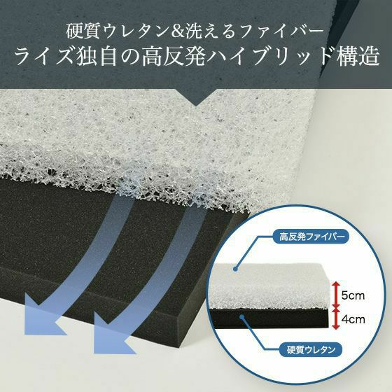 通気性抜群で洗えて清潔なファイバー素材は、ライズマットレス史上初の、『固めと普通のリバーシブル構造』。3分割タイプだから、ウレタンとの組み合わせで8通り以上の寝心地を可能にした、オーダーメイド感覚の快適高反発マットレスです。