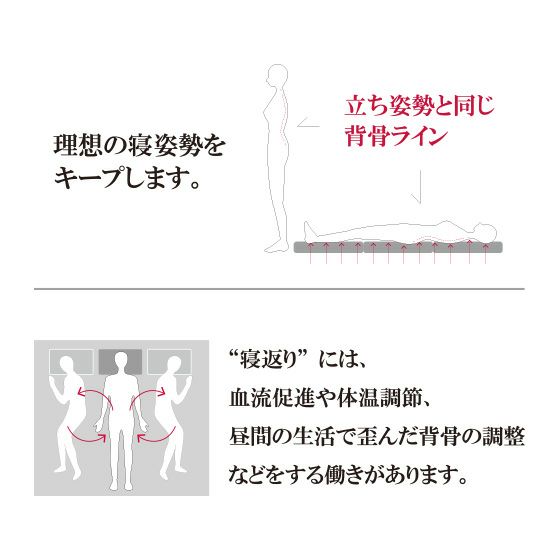 全身をしっかり支えてバランス良く体圧を分散、自然な寝姿勢と寝返りをサポートします。