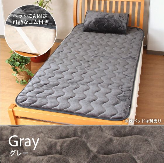 汗などの水分を吸収して発熱する吸湿発熱フランネル素材、 RISEウォーム敷パッドの約1.5倍のボリュームのあったか敷パッドです。蓄熱機能と抗菌防臭機能を持ち合わす中わたを採用、肌にあたる面には静電気防止加工を施しました。寒いシーズンもより暖かく、清潔にご使用いただけます。裏面にはすべりにくいノンスリップ加工、ベッドマットレスにも対応できるゴム付きです。