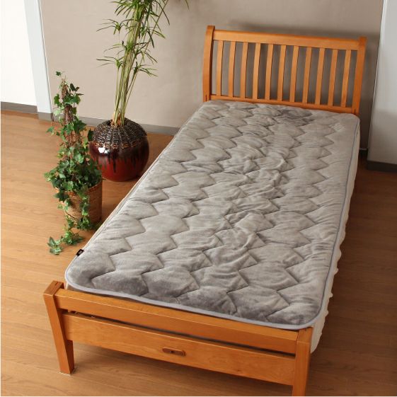 汗などの水分を吸収して発熱する吸湿発熱フランネル素材、 RISEウォーム敷パッドの約2.1倍のボリュームのあったか敷パッドです。蓄熱機能と抗菌防臭機能を持ち合わす中わたを採用、肌にあたる面には静電気防止加工を施しました。寒いシーズンもより暖かく、