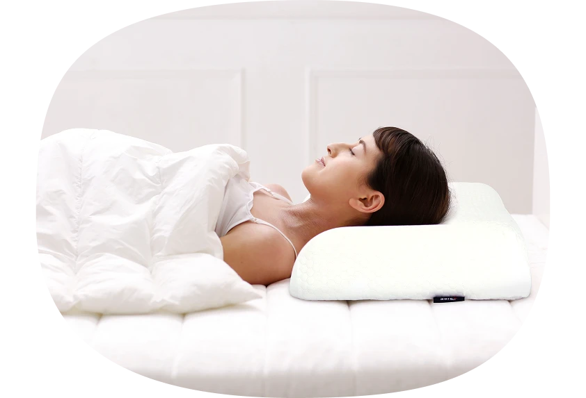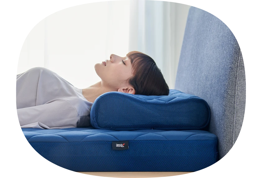 首をしっかり支える頚椎安定形状で、理想の背骨ラインをサポートして 体に負担の少ない睡眠のための枕です。 高反発ファイバーによる抜群の通気構造で、熱や寝汗を逃しやすく*深部体温の下降によりスムーズな入眠をサポートします。