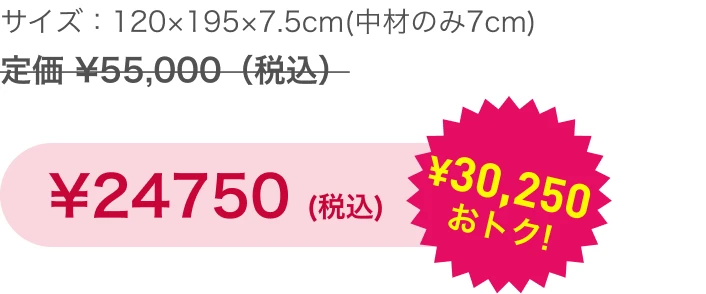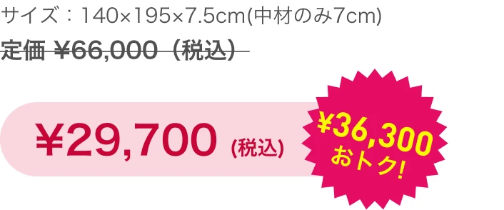 220ニュートンの硬質ウレタンを、ライズ独自のウェーブ形状にカットした高反発マットレスです。身体をしっかりと支える7cmの厚みで、寝心地の良さを保ちながら、自然な寝姿勢と寝返りをサポートして、腰痛対策にもおすすめです。