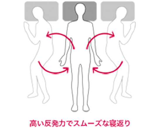 寝返りをするたびに覚醒しやすいため熟睡を維持するためには、スムーズな寝返りを促進する高い反発力がポイントです。